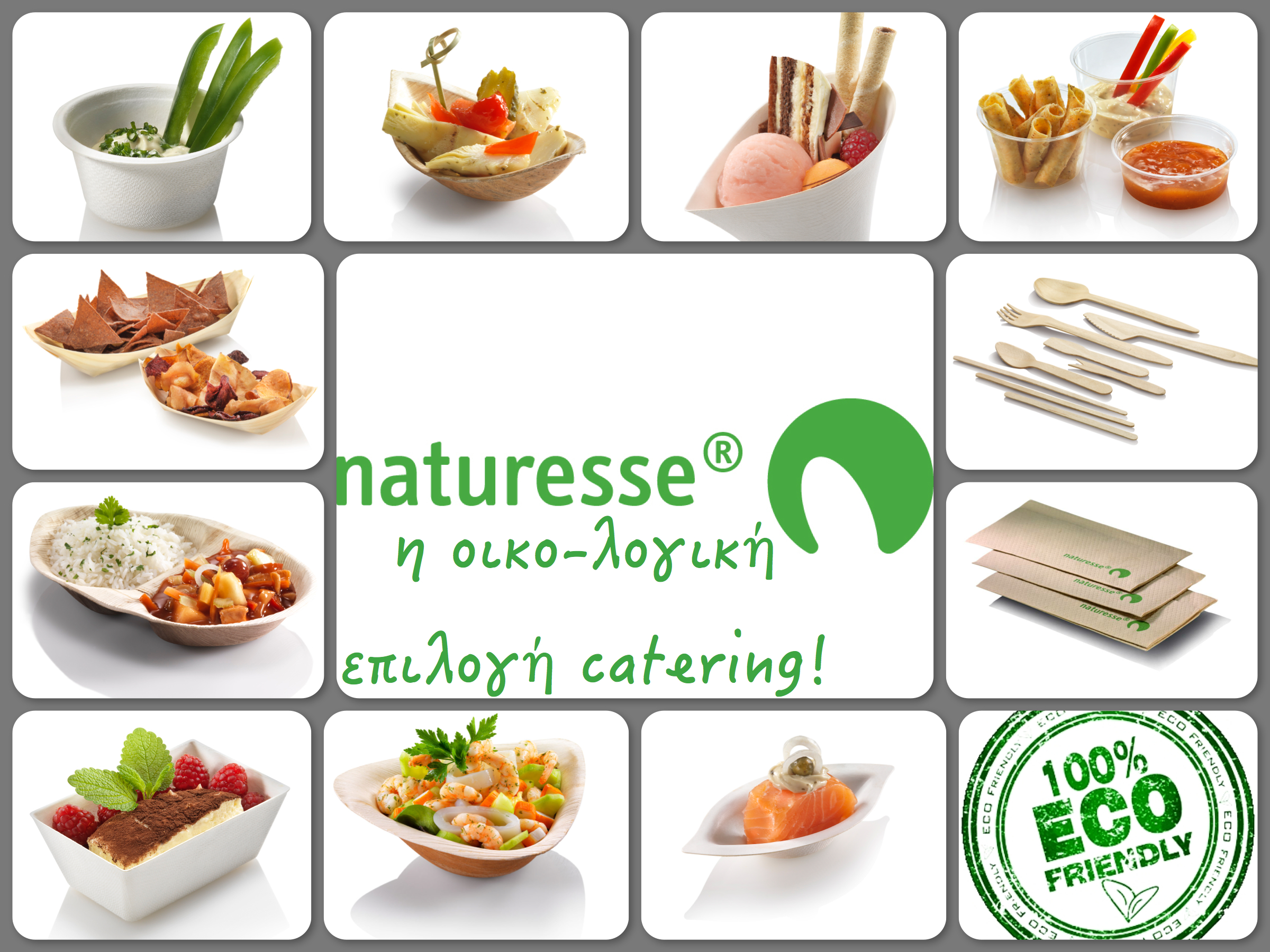 Τα προϊόντα naturesse διαθέτουν μια ευρεία γκάμα συσκευασιών και προϊόντων μιας χρήσεως με σκοπό να σας βοηθήσουν να προσφέρετε την πλέον υγιεινή και οικολογική επιλογή εστίασης στην εκδήλωση σας !